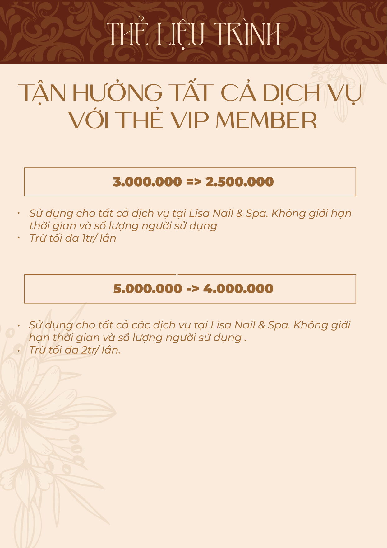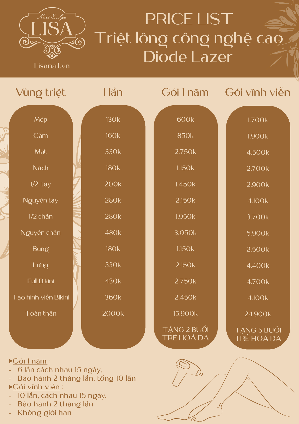 Bảng giá dịch vụ – Lisa Nail & Spa